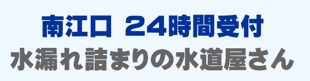 南江口で早くて安い水道修理業者をお探しの方は当店までお問い合わせください。蛇口の水漏れ、トイレつまり、排水口の溢れ、パイプ修理など、南江口での水道トラブルは最短15分到着です。南江口は24時間受付。南江口エリアは見積もり無料、出張費0円でスタッフがかけつけます。南江口にお住まいの方で水廻りのお困りごとはご相談ください。