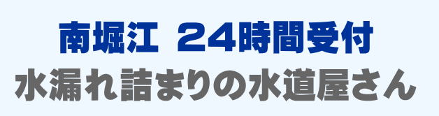南堀江で早くて安い水道修理業者をお探しの方は当店までお問い合わせください。蛇口の水漏れ、トイレつまり、排水口の溢れ、パイプ修理など、南堀江での水道トラブルは最短15分到着です。南堀江は24時間受付。南堀江エリアは見積もり無料、出張費0円でスタッフがかけつけます。南堀江にお住まいの方で水廻りのお困りごとはご相談ください。